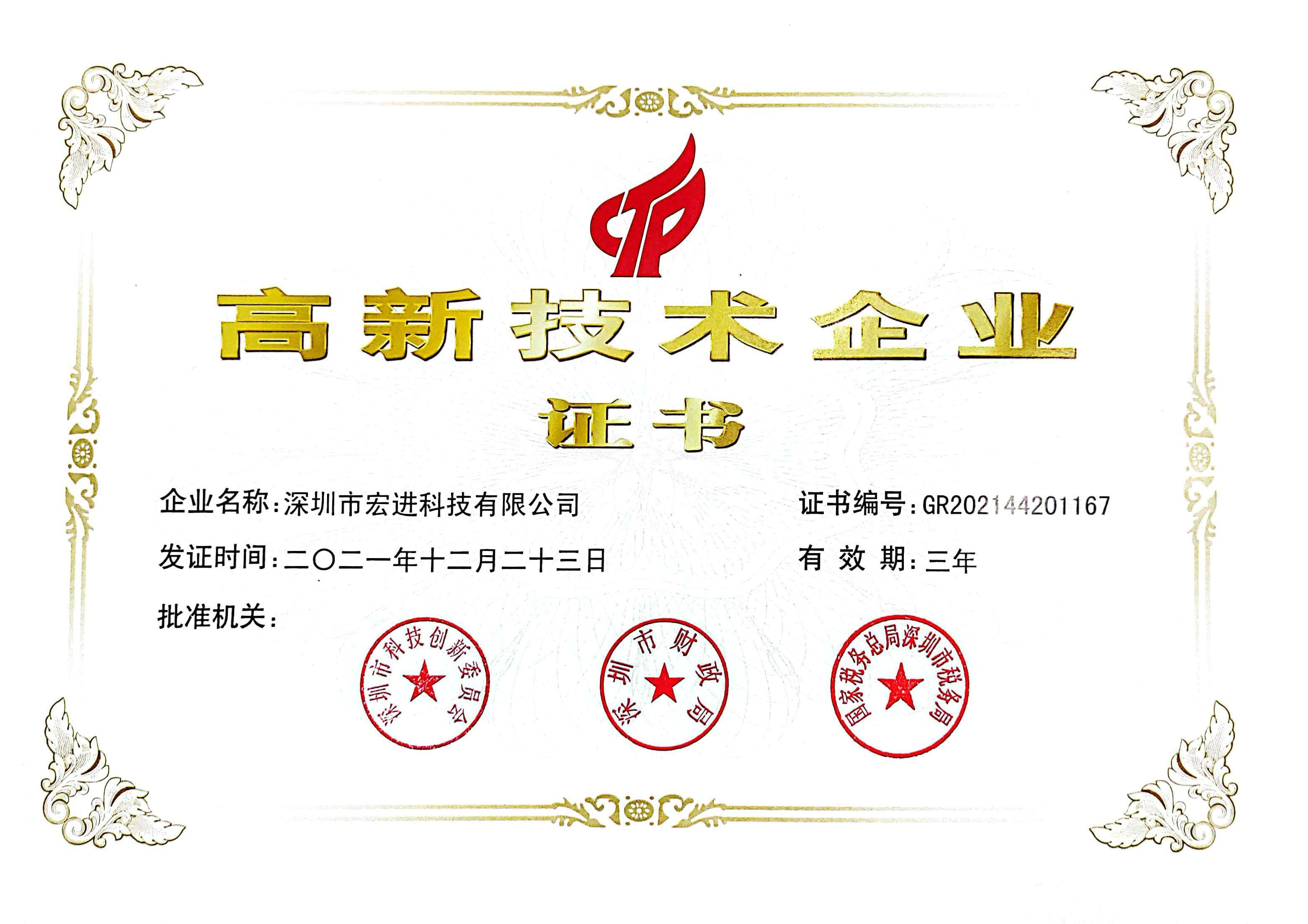 高新技術(shù)企業(yè)證書